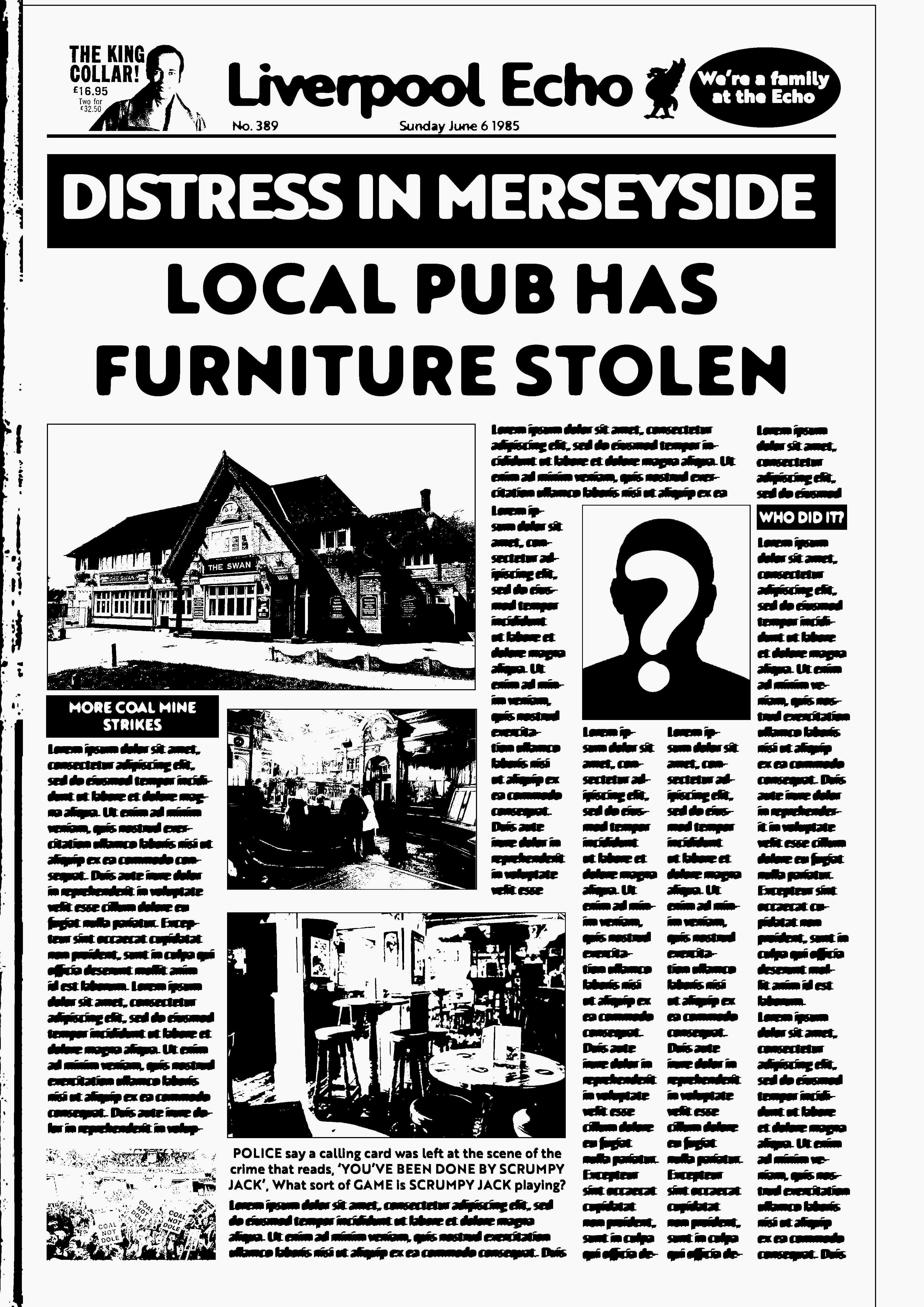 This project is a satirical take on the negative stereotypes of scousers and the working class, presenting a collection of ephemera that forms a crimeboard family-tree that explores the culture of pub glass “theft”, specifically focussed on my familial association with this culture.